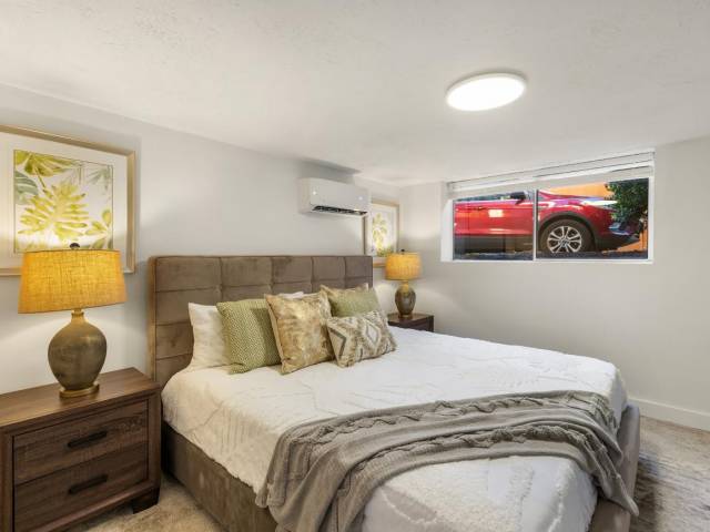 The main level offers timeless charm with coved ceilings, a formal dining room with French doors, two bedrooms, and a sleek, updated bath. The fully finished lower level presents endless possibilities—a private MIL suite, Airbnb, or rental—featuring its own entrance, second kitchenette, three bedrooms, a full bath, and a spacious living area.